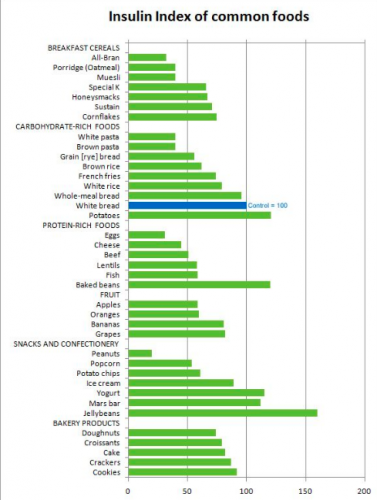 Der Insulin-Index gibt die Insulinausschüttung pro Kalorie des verzehrten Lebensmittels an.