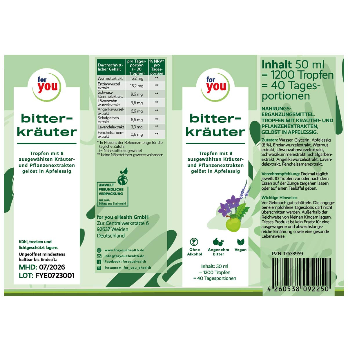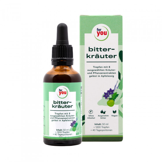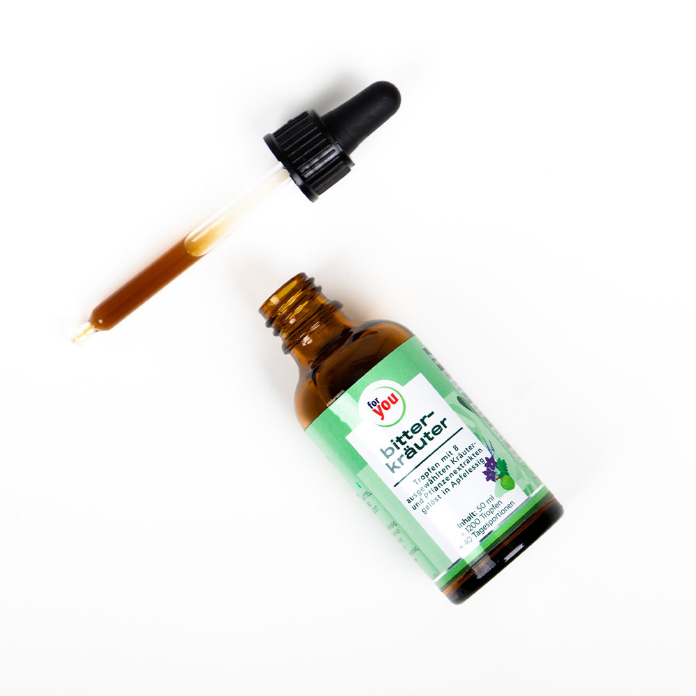 for you bitterkräuter ist eine sorgfältig abgestimmte Mischung von Kräuterextrakten in flüssiger Form: