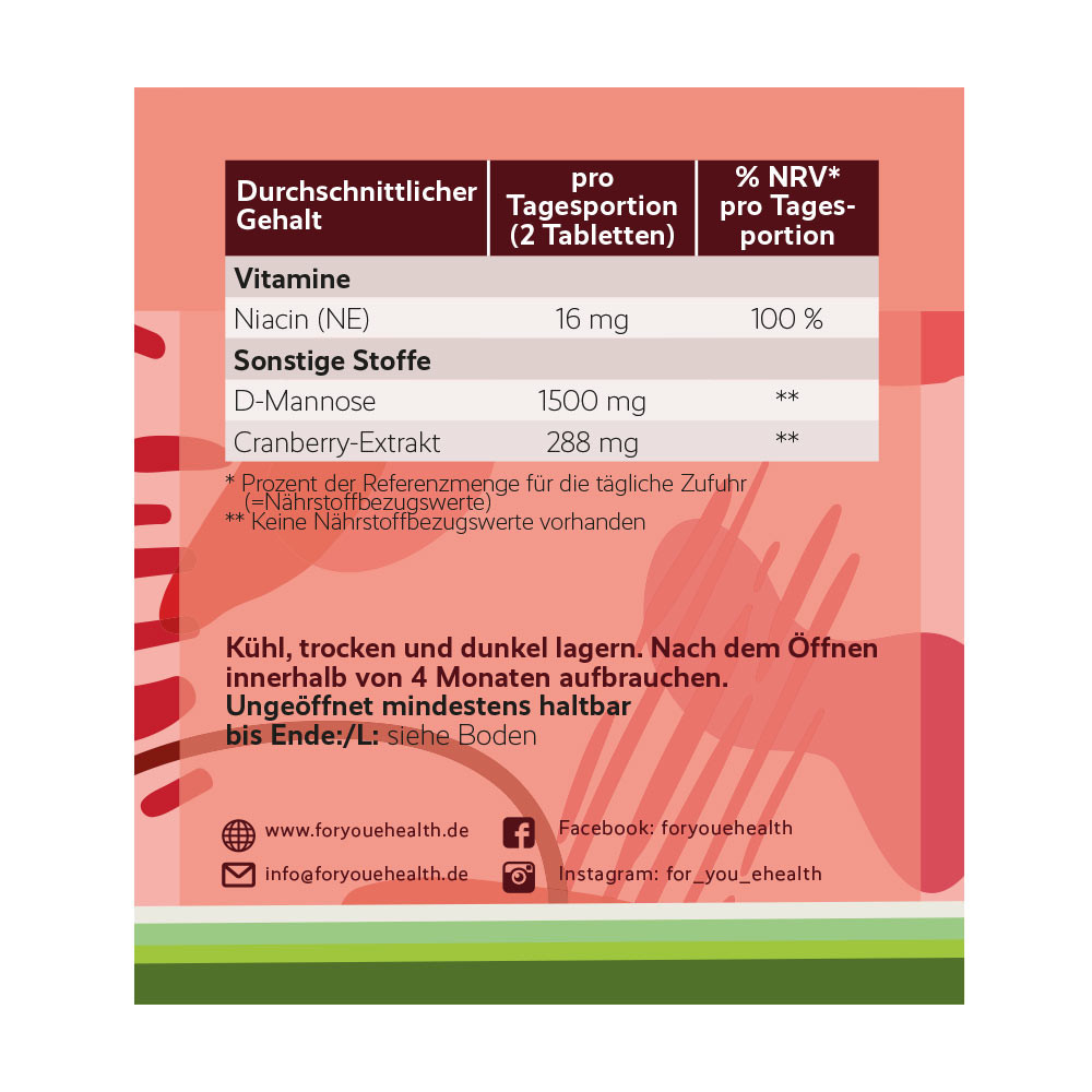 for you D-Mannose Cranberry for you D-Mannose mit Cranberry for you D-Mannose for you D-Mannose Cranberry - Etikett