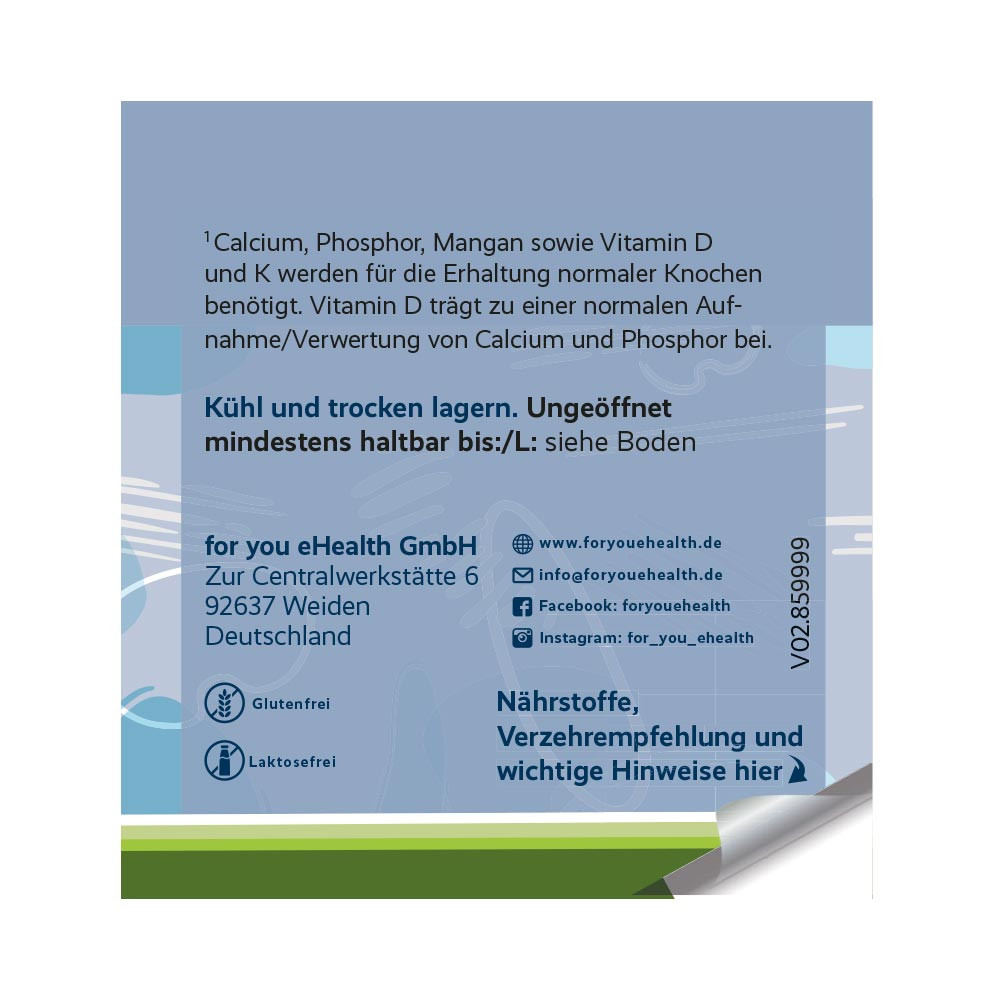 - die Spurenelementen Kupfer, Mangan und Bor und die Vitamine D und K zur Erhaltung normaler Knochen.