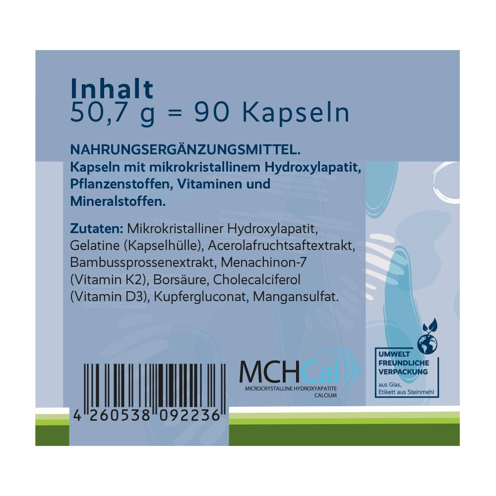 Hydroxyapatit MCH-Cal™ ist ein patentierter Rohstoff, der natürliche Elemente eines gesunden Knochens enthält.