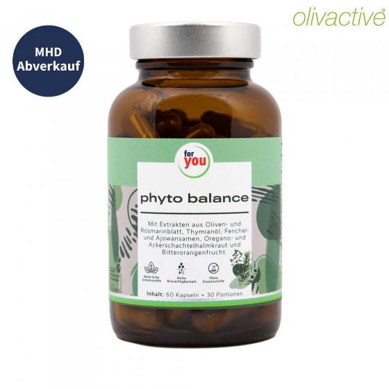 phyto balance ist ein Nahrungsergänzungsmittel in Kapselform und enthält Extrakte aus Oliven- und Rosmarinblatt, Thymianölextrakt, Fenchelsamen- und Ajowansamenextrakt, Oreganokrautextrakt, Ackerschachtelhalmkrautextrakt, Bitterorangenfruchtextrakt und Niacin (Vitamin B3).