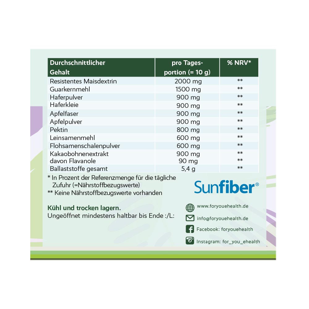 Resistentes Maisdextrin, Guarkernmehl (teilweise hydrolysiert), glutenfreies Haferpulver, Apfelfaser, Apfelpulver, glutenfreie Haferkleie, Kakaobohnenextrakt, Pektin, Leinsamenmehl, Flohsamenschalenpulver.