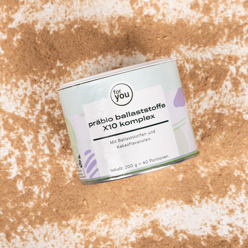 Der präbio ballaststoffe X10 komplex vereint zehn ausgewählte Ballaststoffquellen in einem ausgewogenen Verhältnis – für eine abwechslungsreiche Versorgung mit präbiotischen Pflanzenfasern.