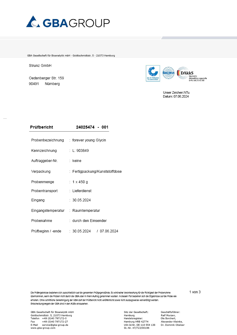 Das forever young Glycin ist vegan, gluten- und laktosefrei, sowie frei von Zusatzstoffen.