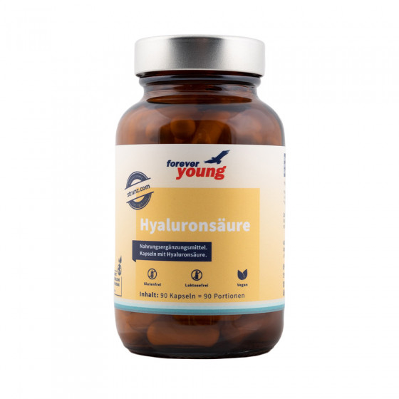 forever young Hyaluronsäure ist ein Nahrungsergänzungsmittel in Kapselform und beinhaltet hochmolekulare Hyaluronsäure (1,5 - 1,7 Millionen Dalton).