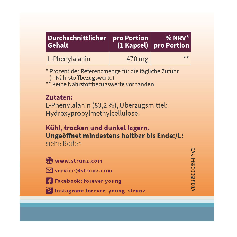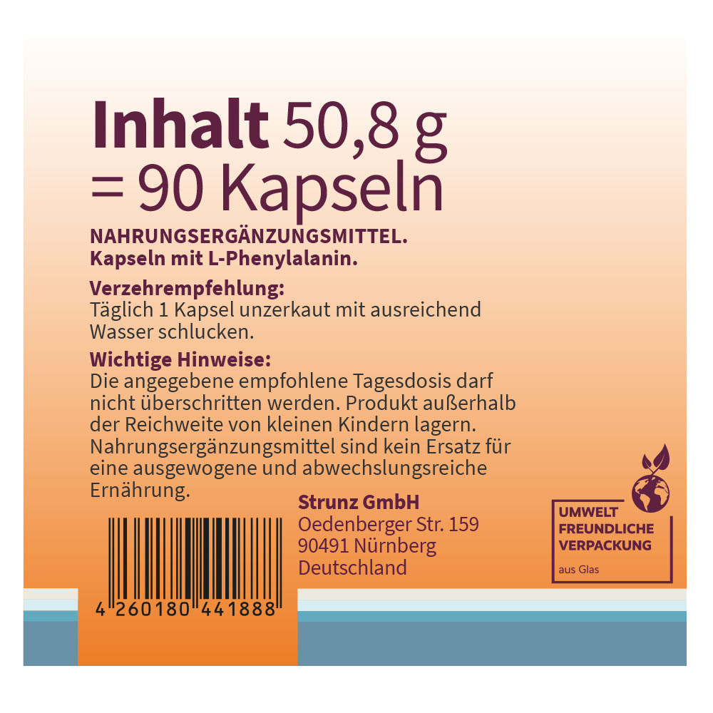 L-Phenylalanin ist ein Nahrungsergänzungsmittel in Kapselform bestehend aus der essentiellen Aminosäure L-Phenylalanin.
