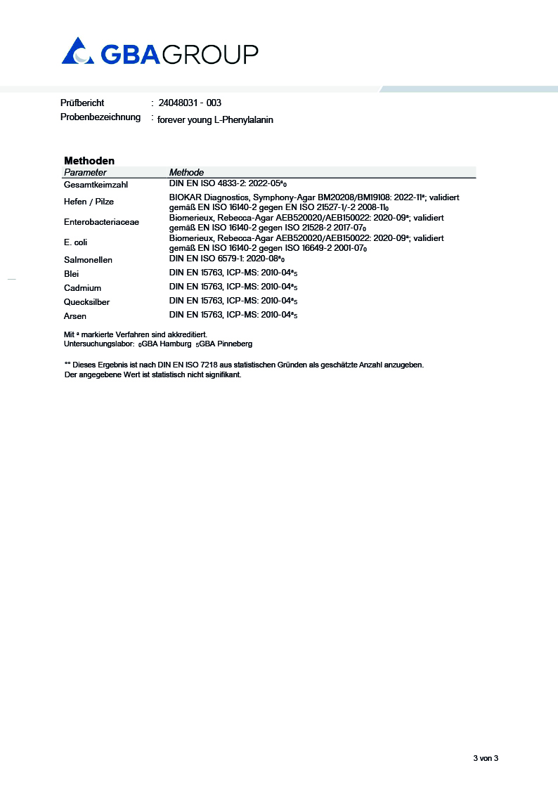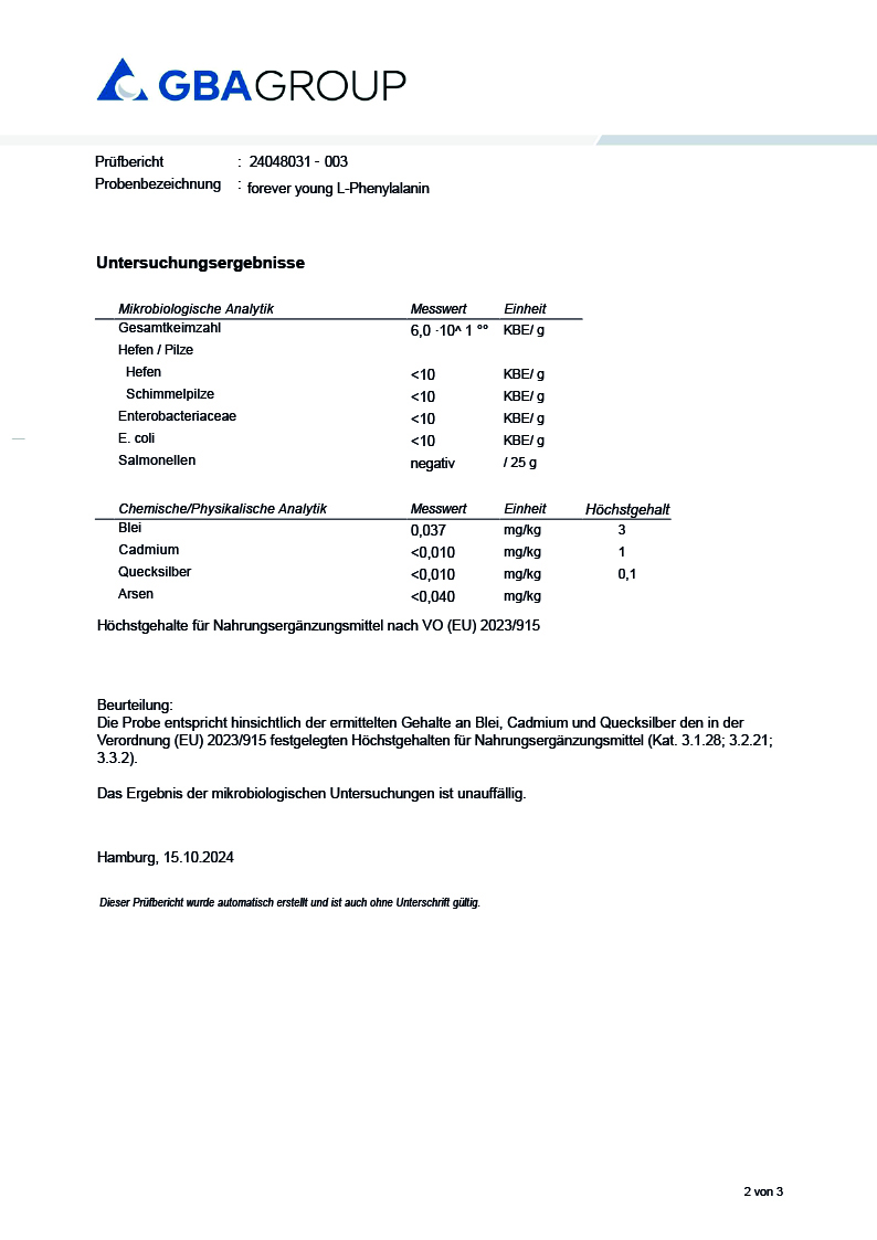 Unsere Produkte werden durch ein unabhängiges externes Labor geprüft, um höchste Qualität und Sicherheit zu gewährleisten. Durch diese Laboranalysen stellen wir sicher, dass unsere Produkte den strengsten Qualitätsstandards entsprechen. Wir möchten unseren Kunden damit Transparenz, Sicherheit und Zuverlässigkeit entgegenbringen.