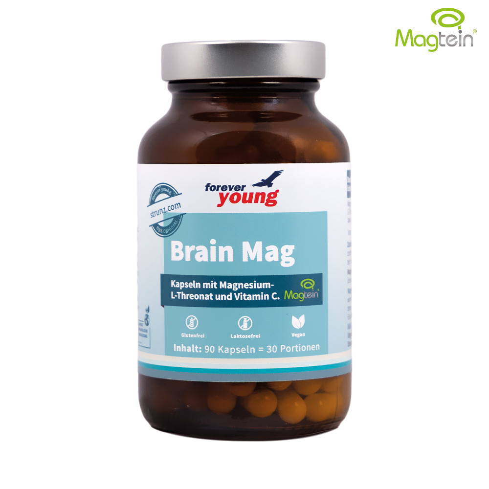 Mit dem Älterwerden rückt die Erhaltung der geistigen Leistungsfähigkeit zunehmend in den Fokus. Hier kann Brain Mag mit dem patentierten Premium-Rohstoff Magtein® effektiv unterstützen.