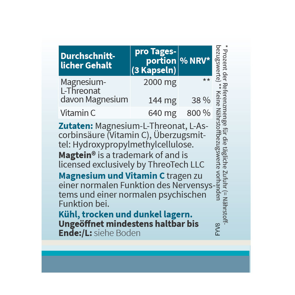 - mit dem Premium - Markenrohstoff Magtein® für optimale Bioverfügbarkeit im Gehirn