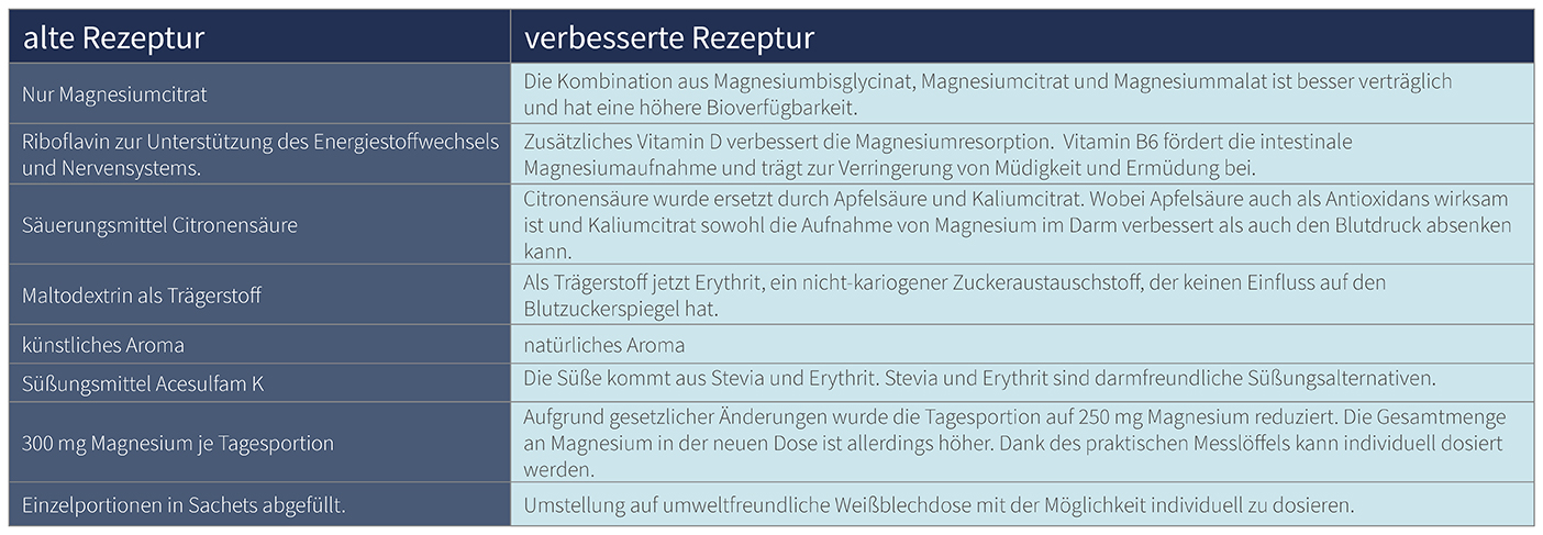 - besonders gut verträgliche Kombination aus Magnesiumbisglycinat, Magnesiummalat und Magnesiumcitrat