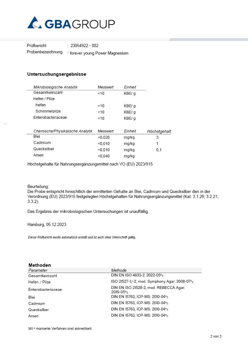 Unsere Produkte werden durch ein unabhängiges externes Labor geprüft, um höchste Qualität und Sicherheit zu gewährleisten. Durch diese Laboranalysen stellen wir sicher, dass unsere Produkte den strengsten Qualitätsstandards entsprechen. Wir möchten unseren Kunden damit Transparenz, Sicherheit und Zuverlässigkeit entgegenbringen.