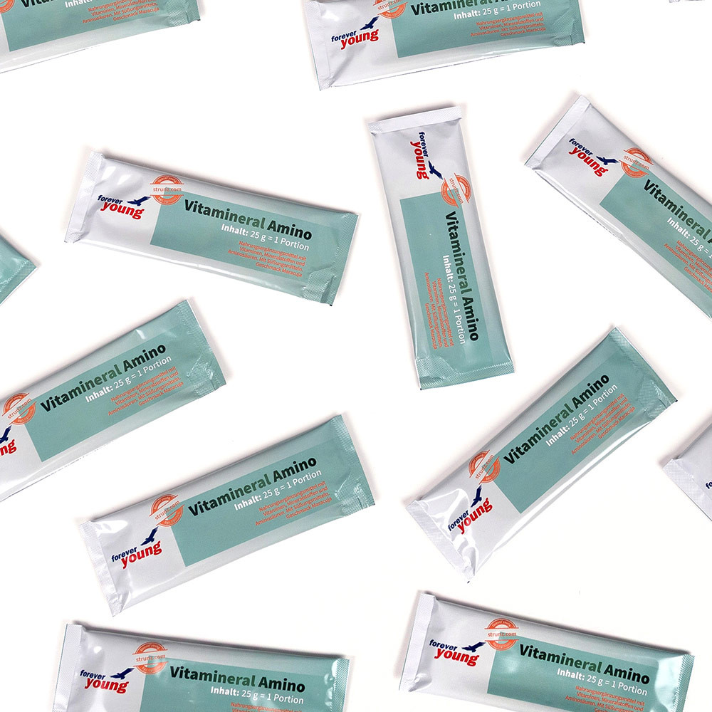 - Aminosäuren-Multivitamin-Komplex in praktischen Tagesportionen verpackt