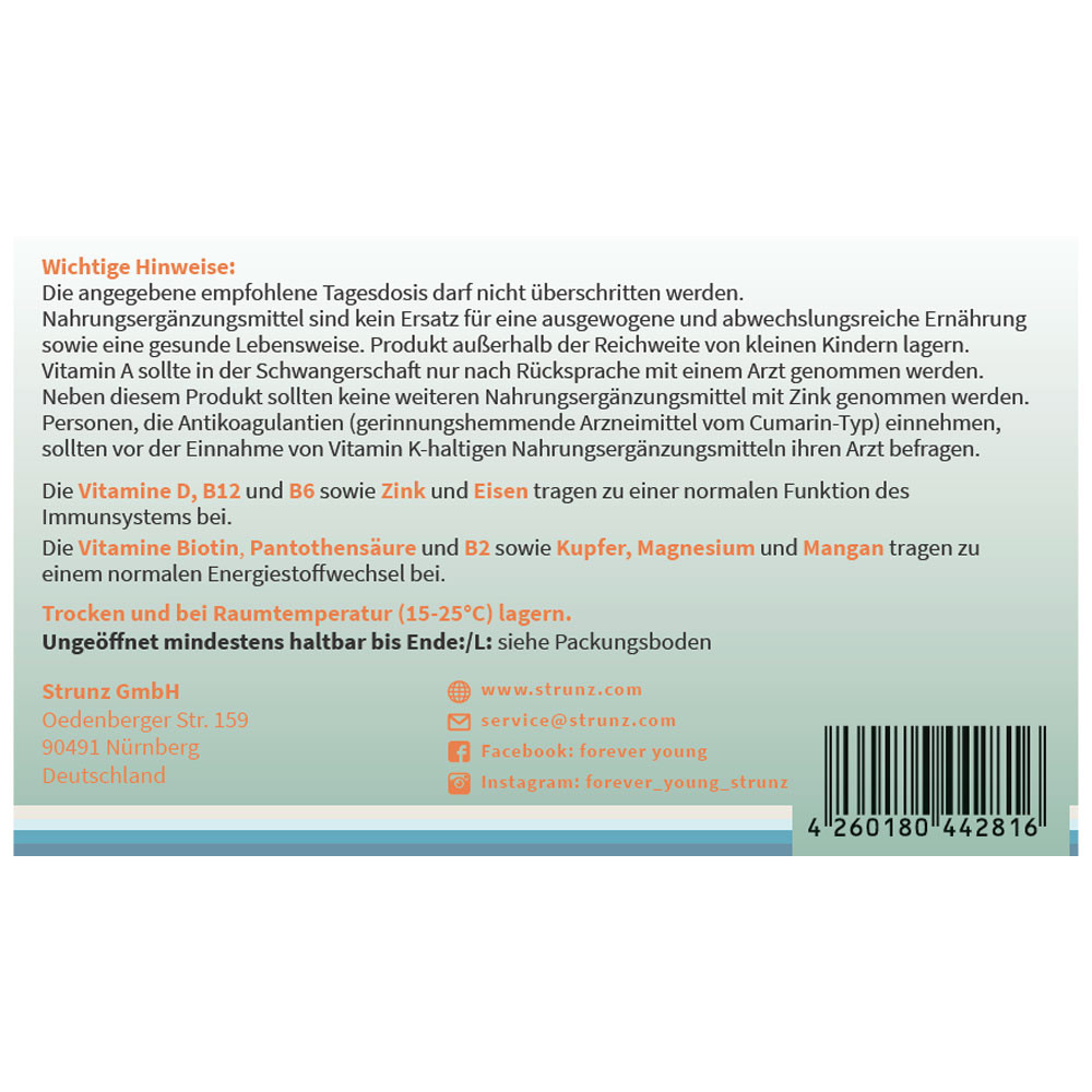 | Multi-Vitalstoff-Produkt mit Fokus auf Vitaminen, Mineralstoffen und Spurenelementen | Multi-Vitalstoff-Produkt mit Fokus auf Vitaminen, Mineralstoffen und Spurenelementen |