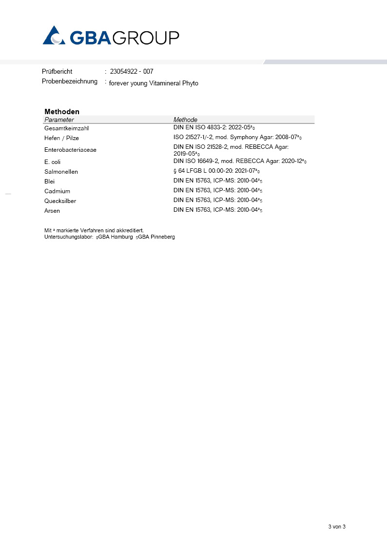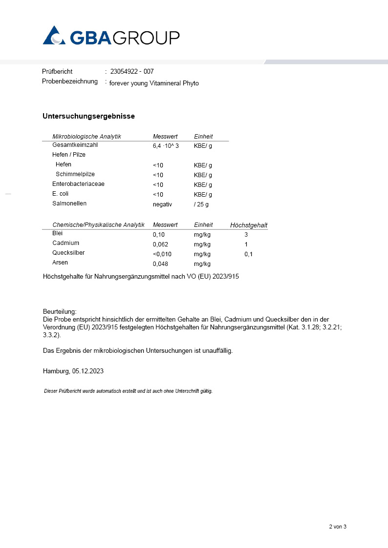 Unsere Produkte werden durch ein unabhängiges externes Labor geprüft, um höchste Qualität und Sicherheit zu gewährleisten. Durch diese Laboranalysen stellen wir sicher, dass unsere Produkte den strengsten Qualitätsstandards entsprechen. Wir möchten unseren Kunden damit Transparenz, Sicherheit und Zuverlässigkeit entgegenbringen.