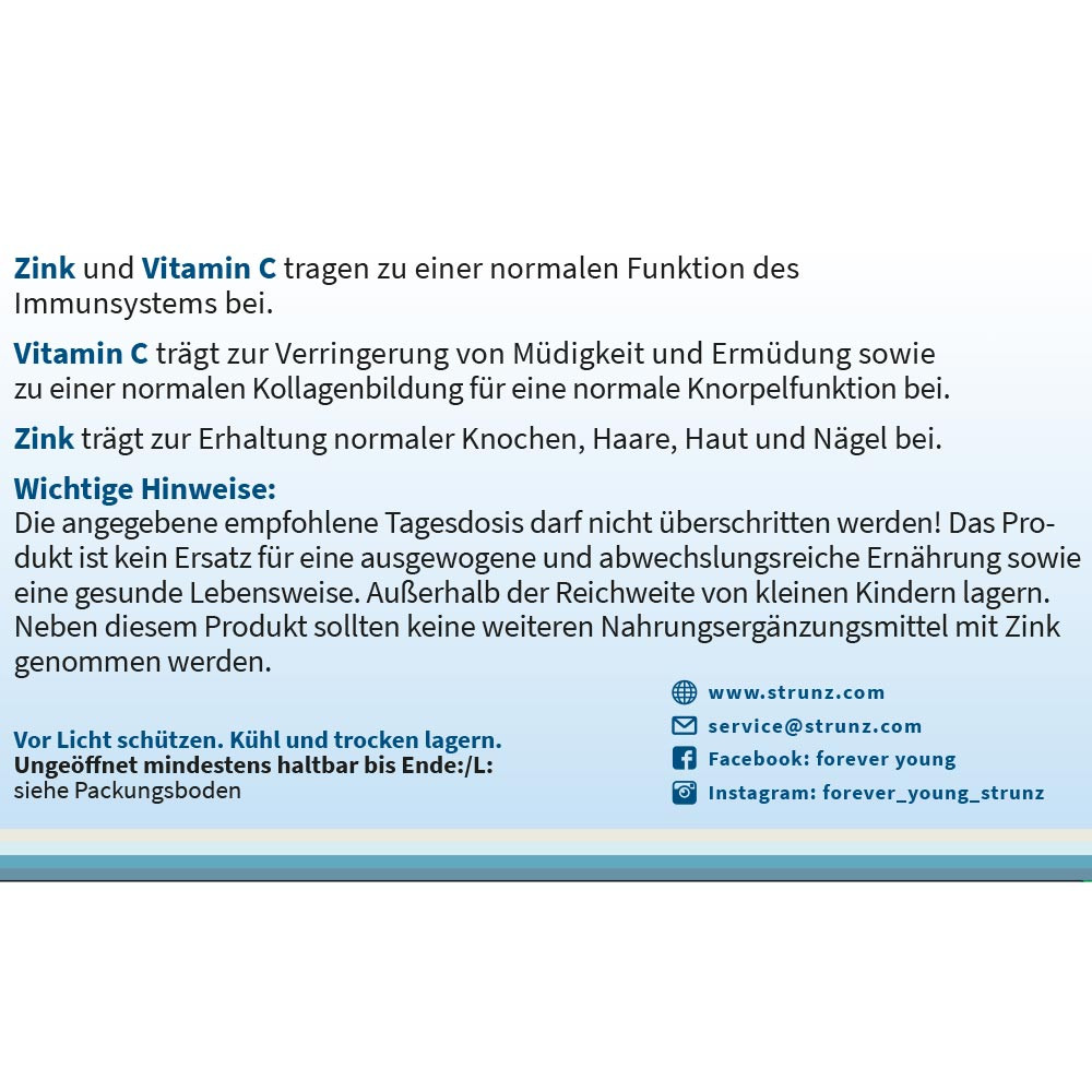 - Zink und Vitamin C tragen zu einer normalen Funktion des Immunsystems bei.