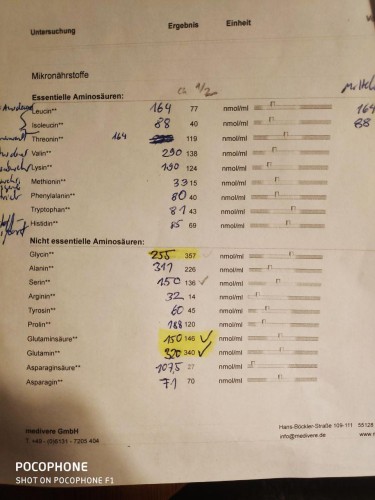 Ich hatte überlegt, ob ich mir noch eine bestimmte Aminosäure zukaufen ollte zum supplementieren, aber irgendwie ist alles "demokratisch" niedrig, deshalb werde ich wohl erst mal weiter machen wie bisher.