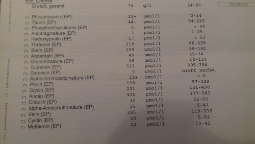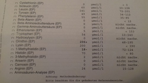 Habe im März und Juni Aminogramme machen lassen und mein Arginin Wert war katastrophal niedrig.