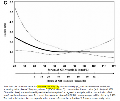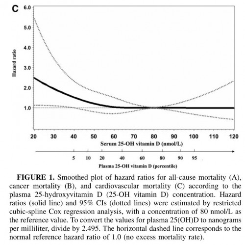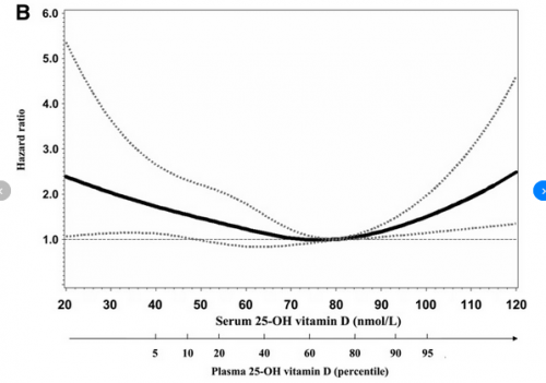 Sagt die Studie vielleicht eher aus, dass für die Bereiche >80nmol/l gilt, je mehr inaktives Vitamin D vorhanden ist, desto höher die Todesrate?