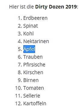 Aber beim Apfel ist Bio zwingend angeraten, weil: der klassische Apfel 31x eine Pestizid-Behandlung bekommt!!