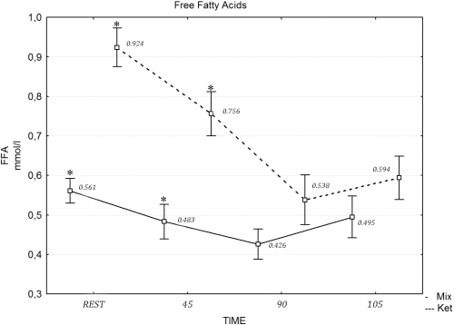 Triglyceride im Blut ≠ freie Fettsäuren. Natürlich hast du unter Keto höhere Werte freier Fettsäuren, das ist ja deine Energiequelle, die beim Fasten normal aus dem Fettgewebe kommt. Das sieht man z. B. in folgender Grafik gut. Keto ernährte haben unter "Rest" (ohne Sport) fast doppelt so hohe FFA-Werte.