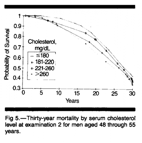Je höher das Cholesterin, desto niedriger die Todesrate.