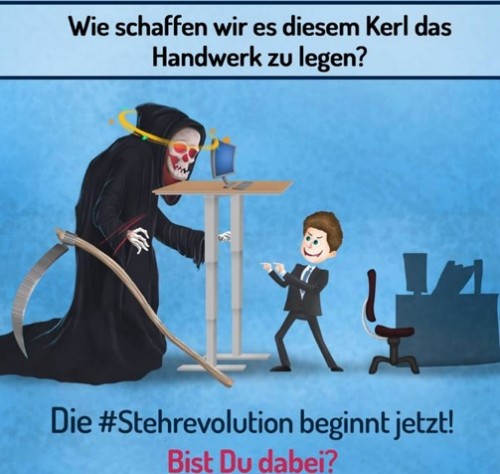 Wow. Ich wusste nicht, dass man sich wirklich jede halbe Stunde für 2 Minuten bewegen soll. Ich werde das auf jeden Fall berücksichtigen. Vielleicht kann ich meinen Chef auch dazu überreden, sich diese Stehschreibtische anzusehen.