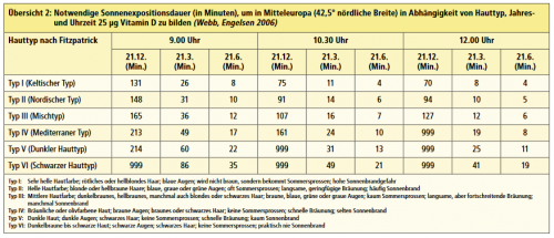 Da sieht man welcher Hauttyp um wieviel Uhr über das Jahr verteilt wieviele Minuten braucht um 25mcg VitD herzustellen.