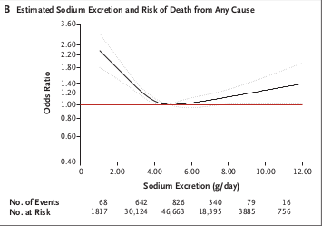 Und dazu kommt die in meinem Buch referenzierte Studie, wo man die U-Kurve in Canada ermittelt hatte, demnach die niedrigste Sterberate bei einer Natriumaufnahme von ca. 5-6g lag...also ca. 12g Salz am Tag. D.h. uns wurde mal wieder was vollkommen falsches empfohlen. Das wird nur gefährlich, wenn der Insulinspiegel krankhat hoch ist...wobei das inzwischen auf über 50% der Menschen zutrifft :-/...ich glaube, man muss bald wirklich 2 Lehrbücher schreiben. Eins für met. Gesunde, eins für met.Kranke. Da laufen so viele Prozesse vollkommen anders...schlimm!