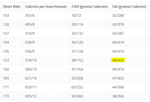 Interessant wäre so eine Tabelle aber in der tat mal für einen echten Nüchternlauf-Zustand. Ob der KH Verbrauch dann tatsächlich insgesamt deutlich geringer ausfällt, zugunsten eines gestiegen Fettverbrauchs; und wie sich das quantitativ darstellt.