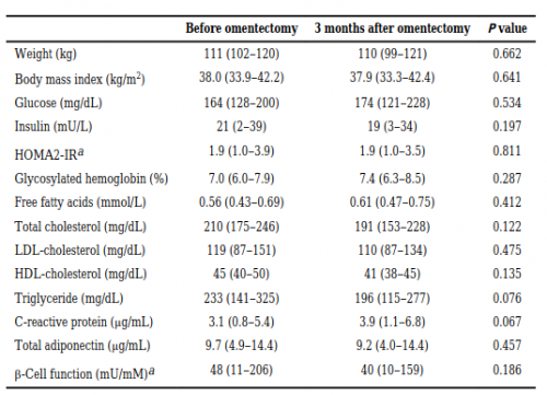 Hier habe ich auch nochmal "schönes" Zahlenmaterial von Adipösen...kein Wunder, dass da dann Erkrankungen jeder Art voll zuschlagen. Die Patienten in dieser Studie haben sich Fett wegschneiden lassen...was nicht wirklich viel gebracht hat. Man beachte den BZ-Wert und den Insulinwert bei diesen Menschen. Auch C-RP und HbA1C ...alles sehr beachtlich schlechte Werte und absolut krank. Da wundert mich nix...aber aus Sicht der Pharma-Industrie sind das herzlich willkommene Patienten. Die bringen Geld...vor allem in Amerika, wo Insulin unfaßbar teuer ist!