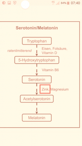 Alle Baustellen im Melatonin-Syntheseweg (Eisen, Vitamin B6, Mg, Zink etc.) sind mitlerweile okay.