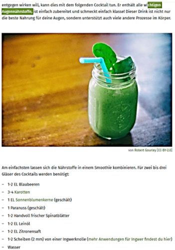 …“Ich habe viele Fälle gekannt, wo Leute mit Augenproblemen nach wenigen Monaten in der Lage waren, ihre Brillen wegzuwerfen, wenn sie diese Säfte (Karotte, Sellerie, Petersilie, Endive) regelmäßig tranken.