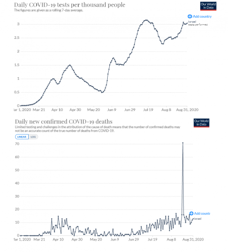 jetzt habe ich mir noch die Mühe gemacht, Israel zu verstehen. Da sind in den letzen 6 Monaten ca. 1.000 Menschen mit positivem Test verstorben.