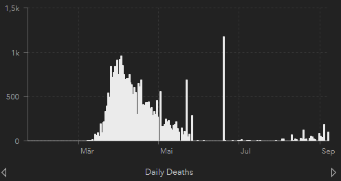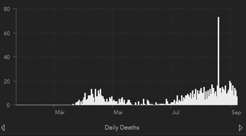 Die Testanzahl wurde erst stark gesenkt und dann massiv erhöht, was gut zu den wenigen "positiven" Todesfällen passt.