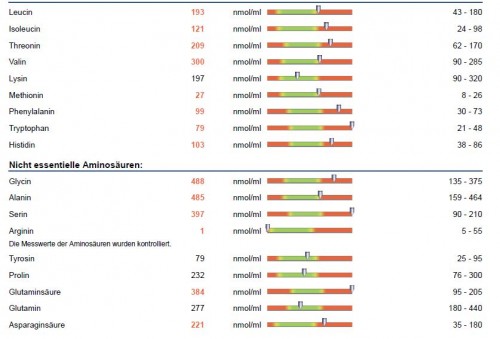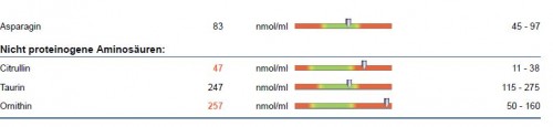 also Lysin und Glutamin haben noch deutlich Lift nach oben, aber ... was ist denn beim Arginin los? Mit so einem Wert ist es unmöglich Leistung zu bringen oder von Gesundheit zu sprechen. Siehe die ganzen News, die sich mit Arginin befassen. Das würde ich auf jeden Fall sofort substituieren.