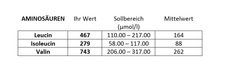 Aminosäuren. Das zentrale Geheimnis von nicht nur Gesundheit, sondern auch Lebensglück. Liegt also vor mir ein Aminogramm.
