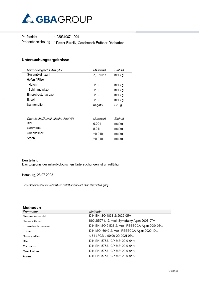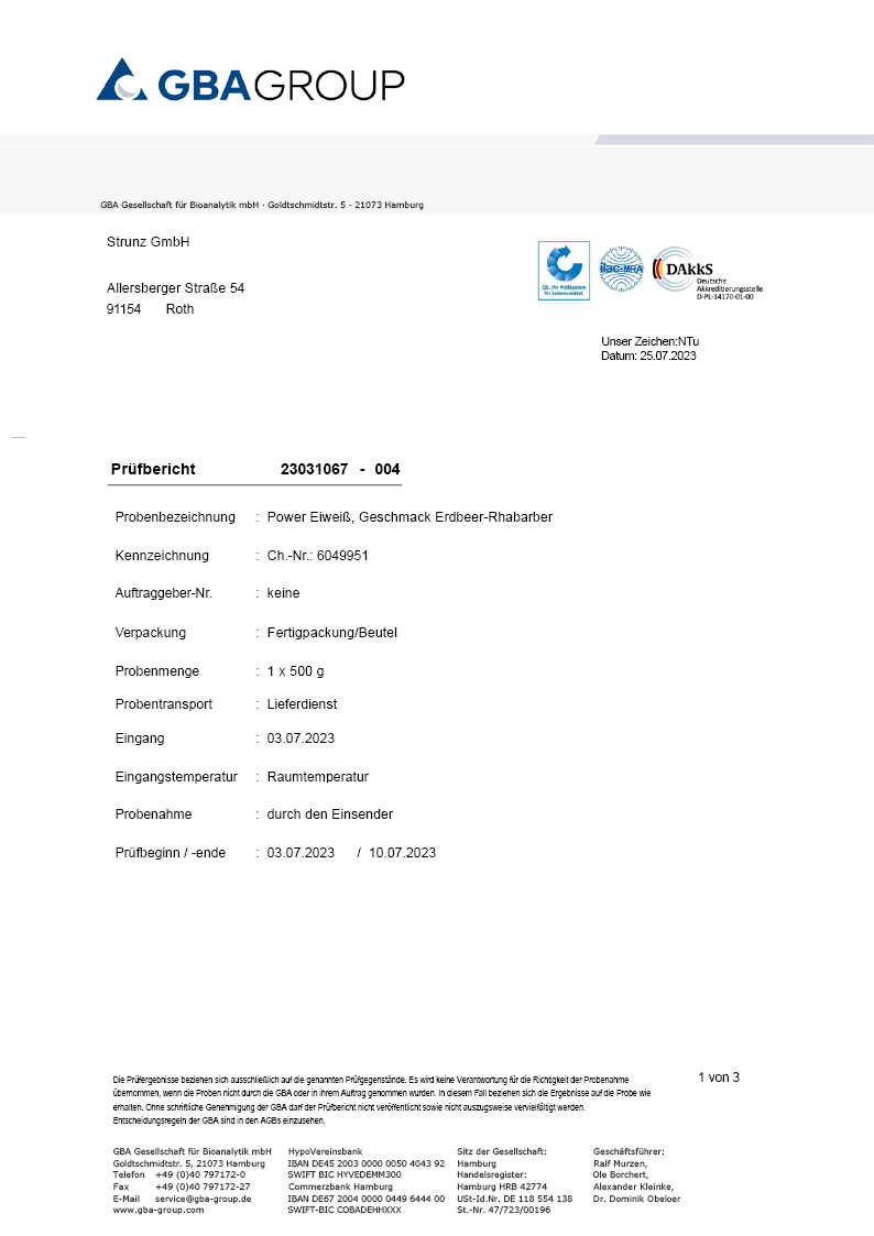 Unsere Produkte werden durch ein unabhängiges externes Labor geprüft, um höchste Qualität und Sicherheit zu gewährleisten. Durch diese Laboranalysen stellen wir sicher, dass unsere Produkte den strengsten Qualitätsstandards entsprechen. Wir möchten unseren Kunden damit Transparenz, Sicherheit und Zuverlässigkeit entgegenbringen.