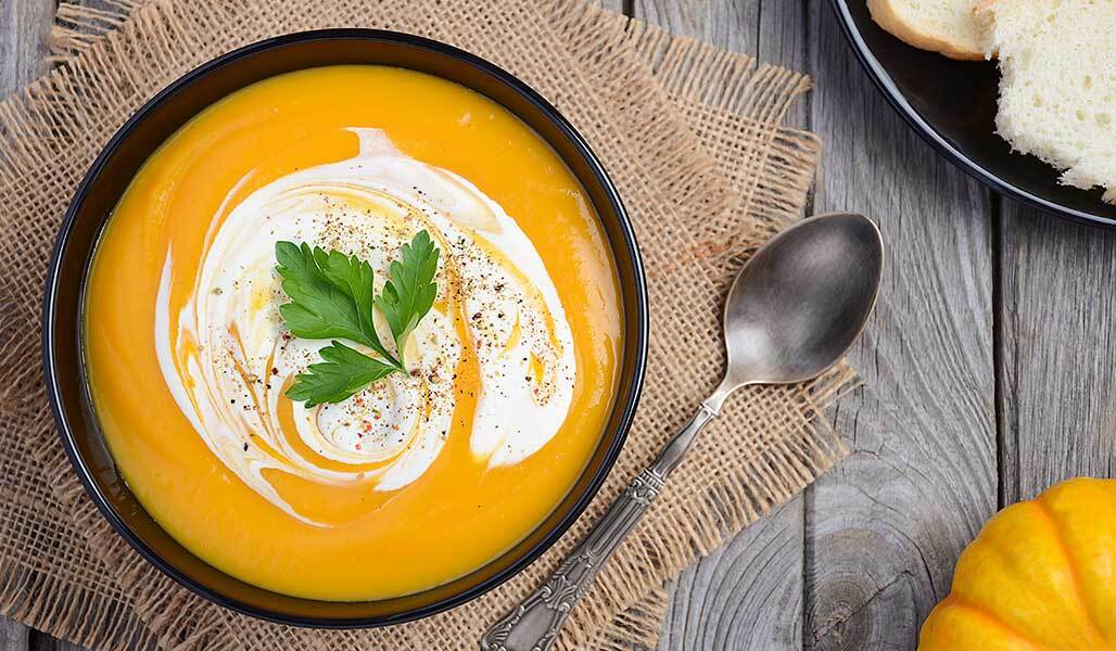 Die Zwiebel abziehen und fein würfeln. Kürbis waschen, abtrocknen, entkernen und in grobe Würfel schneiden. Das Öl in einem Topf erhitzen, Zwiebel- und Kürbiswürfel sowie das Paprikapulver dazugeben und etwa 3 Minuten bei mittlerer Hitze andünsten. Mit der Brühe auffüllen, aufkochen und zugedeckt bei mittlerer Hitze etwa 15 Minuten kochen lassen, bis der Kürbis weich ist.