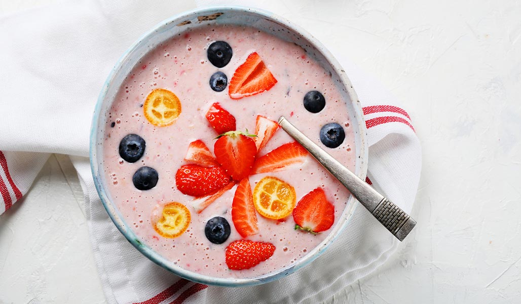 Die Milch in eine Schüssel geben und Eiweißpulver, Müsli, Beeren, Quinoa und die Kokosraspel einrühren.