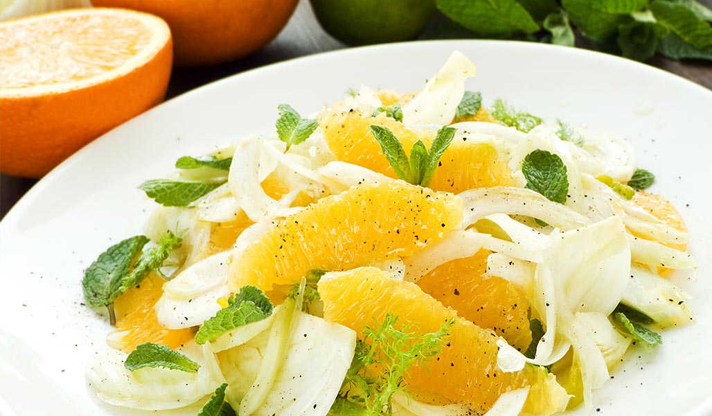 Orangensaft, Olivenöl, Salz, Pfeffer und 1 TL Zitronensaft eine „Vinaigrette“ herstellen und mit dem Fenchel und den Orangen mischen. Alles auf Tellern anrichten und servieren.