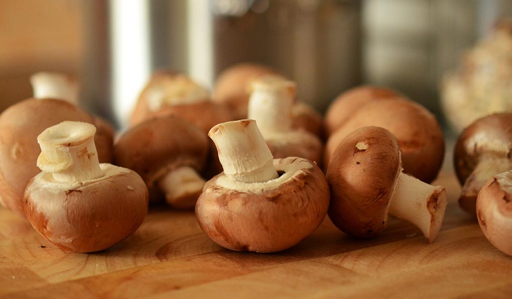 Pilze zuerst grob vom Dreck befreien und putzen, dann vierteln. Kräuter fein hacken, Knoblauch schälen und ebenfalls hacken.