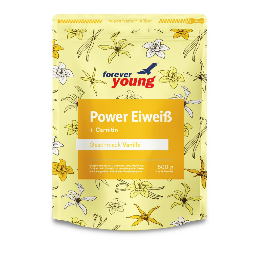 Beim forever young Power Eiweiß handelt es sich um eine hochwertige und wohlschmeckende Vanille Proteinpulver-Mischung, geeignet für Sportler und Menschen, die sich eiweißreich ernähren wollen.