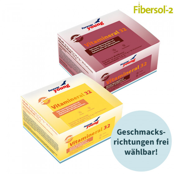 - Immunsystem: Eisen, Zink, Kupfer, Selen, Vitamin A, B12, B6, Folsäure und Vitamin D tragen zu einer normalen Funktion des Immunsystems bei; Vitamin C vor allem auch während und nach sportlicher Belastung, wenn mindestens 200 mg Vitamin C zusätzlich zur normalen Ernährung genommen werden. Eine Portion forever young Vitamineral 32 sichert dies durch 300 mg Vitamin C pro Portion.