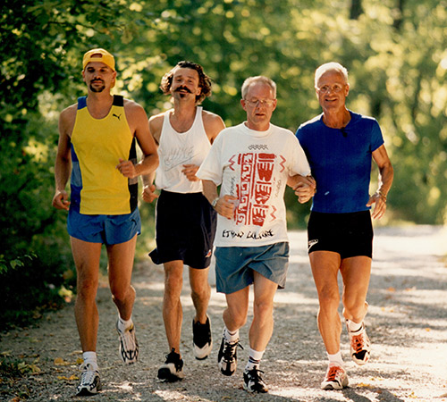 Dr. med. Ulrich Strunz mit Seminarteilnehmern beim lockeren Laufen. (copyright by Helmut Bauer Photographie, Roth)